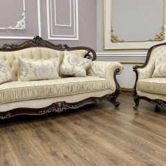 Комплект мягкой мебели "Мона Лиза" создаст неповторимую атмосферу роскоши и уюта в вашей гостиной. Мягкая мебель выполнена в классическом стиле и великолепно сочетается с другой мебелью в данном цвете фабрики "Эра-Мебель".